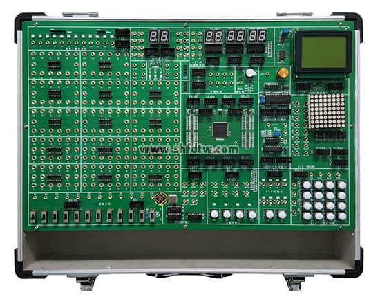 設有8位邏輯電平開關、8位邏輯電平指示、四位十進制設碼顯示器、一個共陰數(shù)碼管、兩組撥碼開關、單次脈沖、高可靠圓腳集成插座8P、14P、16P、28P、40P等若干以及實驗所需的電阻器、電位器三極管等。