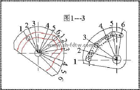軸Ⅳ上有兩個(gè)滑移齒輪的變速,實(shí)際只有三種傳動(dòng)比,主軸Ⅵ上的滑移齒輪(既齒輪離合器M2)也有左、中、右三種位置(既高速傳動(dòng)、空檔和低速傳動(dòng))?;讫X輪的移動(dòng)依靠二個(gè)凸輪分別控制,凸輪的形狀見(jiàn)圖1---3。