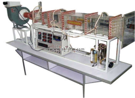 多翼式低噪音風(fēng)機(jī),自動(dòng)調(diào)節(jié)風(fēng)門(mén),組合式有機(jī)玻璃風(fēng)洞,有機(jī)玻璃實(shí)驗(yàn)管段,紫銅平板試件,固體調(diào)壓模塊配電位器調(diào)節(jié)加熱功率,數(shù)顯電流表、電壓表顯示加熱電流電壓,風(fēng)流量由畢托管配差壓傳感器測(cè)量,溫度由PT100熱電阻測(cè)量,8路萬(wàn)能信號(hào)輸入巡檢儀顯示溫度、阻力、流量,不銹鋼支架。