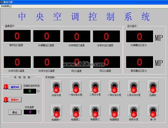 電氣控制由手動(dòng)控制,如加熱器的電源、送風(fēng)機(jī)電源、制冷/制熱的啟動(dòng)等,并帶有相應(yīng)的指示。
