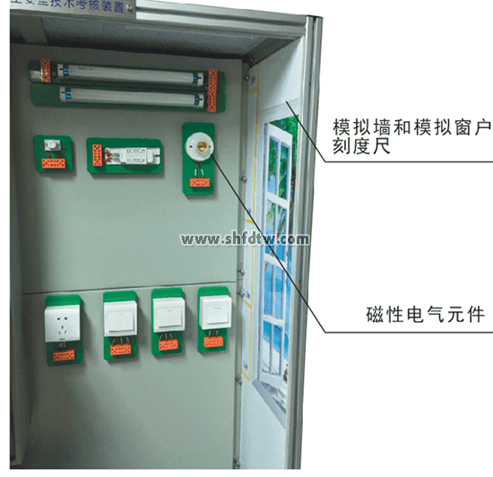 3、設(shè)備配置:柜內(nèi)裝有單聯(lián)開關(guān)、雙聯(lián)開關(guān)、單三相電度表、照明燈、日光燈等各種實(shí)訓(xùn)元器件,且所有器件的接線都在接線端子排上進(jìn)行接線,從而避免了因長(zhǎng)時(shí)間在器件本身進(jìn)行走線而導(dǎo)致其損壞,通過(guò)走線槽進(jìn)行工藝布線。內(nèi)含:電源開關(guān)(單相斷路器3只、三相斷路器1只)、電能表2只、照明燈(白熾燈、日光燈各1個(gè))、熔斷器2個(gè)(備注額定電流32A以上)、漏電保護(hù)器1個(gè)、組合開關(guān)1個(gè)、單雙聯(lián)開關(guān)各1個(gè)及接線端子若干。