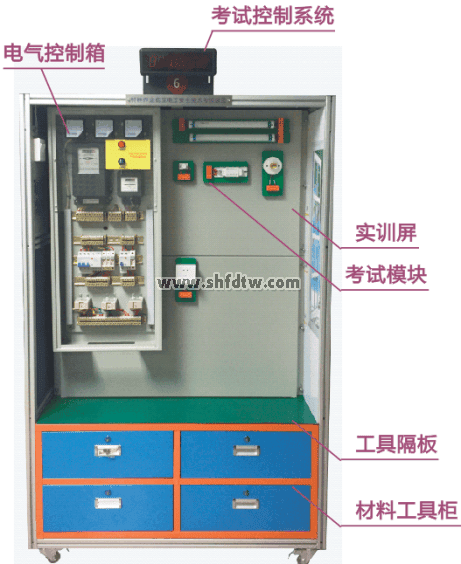 5、安全防范結(jié)構(gòu)要求:如牢固接地,按鈕指示燈內(nèi)置,電機(jī)防護(hù)罩等,結(jié)構(gòu)不能偏離工業(yè)實(shí)際應(yīng)用,柜內(nèi)包含電氣實(shí)操/考核板,工具隔板、電機(jī)及電機(jī)安裝板等。