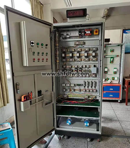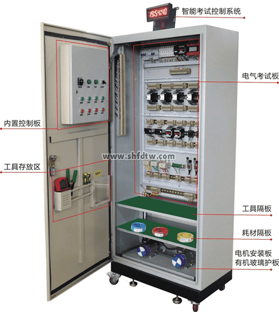 6、安全防范結(jié)構(gòu)要求:如牢固接地,按鈕指示燈內(nèi)置,電機(jī)防護(hù)罩等,結(jié)構(gòu)不能偏離工業(yè)實(shí)際應(yīng)用,柜內(nèi)包含電氣實(shí)操/考核板,工具隔板、電機(jī)及電機(jī)安裝板等。