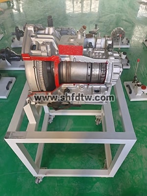 3.經(jīng)解剖的手動(dòng)變速器可動(dòng)態(tài)演示與檢測(cè),減速電動(dòng)機(jī)輸入動(dòng)力,變速器可進(jìn)行換檔操作及動(dòng)態(tài)測(cè)試,四車輪與地面接觸可慢速行駛演示。