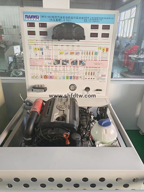 該設(shè)備采用全新大眾速騰電控汽油發(fā)動(dòng)機(jī)總成及運(yùn)行附件的固定臺(tái)架和運(yùn)行檢測(cè)控制面板臺(tái)架兩部分組成。