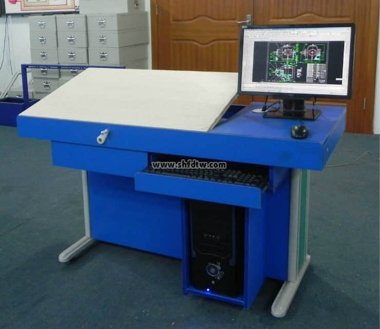 高級(jí)多媒體工程制圖設(shè)計(jì)實(shí)驗(yàn)室設(shè)備是利用“四桿演變機(jī)構(gòu)”進(jìn)行升降,實(shí)現(xiàn)快速、無級(jí)調(diào)節(jié)圖板的傾斜角度。該機(jī)構(gòu)的框架由不銹鋼方管氬焊而成,傳動(dòng)部分采用模具成型或機(jī)加工電鍍件。它具有傳動(dòng)靈活、使用方便、美觀堅(jiān)固等特點(diǎn)。本套設(shè)備適用于各類大中專院校、技校及職業(yè)高校的制圖課程教學(xué)及課程設(shè)計(jì)和畢業(yè)設(shè)計(jì)。