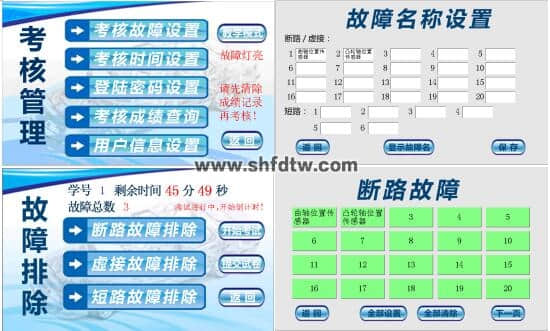 ★該系統(tǒng)由安卓藍(lán)牙的無(wú)線(xiàn)故障設(shè)置系統(tǒng)和觸摸屏的故障考核系統(tǒng)兩部分組成,教師在講課時(shí),用帶安卓系統(tǒng)的手機(jī)或平板電腦遠(yuǎn)程無(wú)線(xiàn)設(shè)置故障,遠(yuǎn)程啟動(dòng)、停止教學(xué)設(shè)備,方便教師教學(xué)講課。學(xué)生考核是在觸摸屏故障考核系統(tǒng)上完成的??稍O(shè)置20路斷路和虛接故障,6路短路故障,可單個(gè)設(shè)置也可多個(gè)故障同時(shí)設(shè)置,并有全部設(shè)置故障和全部清除等功能,教師界面包含故障設(shè)置、時(shí)間設(shè)置、密碼設(shè)置、成績(jī)查詢(xún),學(xué)生界面包含故障排除、故障數(shù)量、剩余時(shí)間等功能,配套汽車(chē)教具廣泛的應(yīng)用與各高校汽車(chē)相關(guān)專(zhuān)業(yè)教學(xué)。