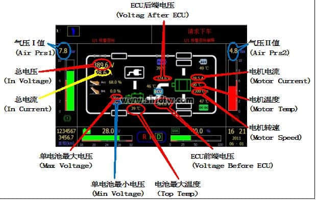 3. 增加動力電池包顯示器(7寸),安裝在教板上,可以觀察充放電過程各項參數(shù),掌握動力電池包充放電過程控制邏輯和主要部件參數(shù)變化規(guī)律。