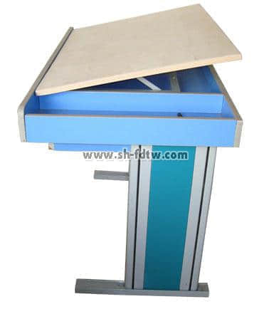 制圖桌是利用“四桿演變機構(gòu)”進行升降,實現(xiàn)快速、無級調(diào)節(jié)圖板的傾斜角度。該機構(gòu)的框架由不銹鋼方管氬焊而成,傳動部分采用模具成型或機加工電鍍件。它具有傳動靈活、使用方便、美觀堅固等特點。本系列教學(xué)設(shè)備經(jīng)使用后,深受廣大師生歡迎,大大提高了繪圖效率,全面提高教學(xué)質(zhì)量。