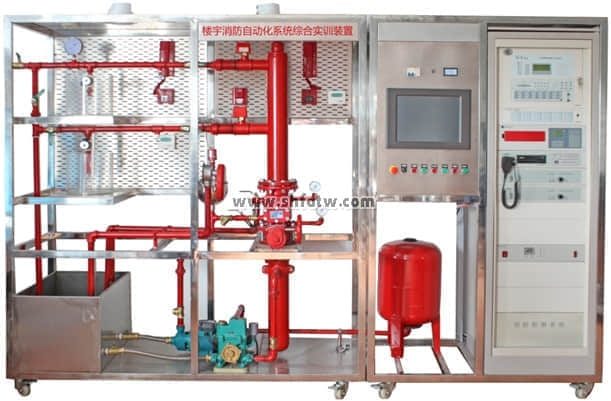 模型框架和水箱等主要部件全部使用不銹鋼器件,保證不生銹、不易老化,模擬兩層大樓噴淋滅火系統(tǒng);模型系統(tǒng)主要由噴淋水泵、氣壓罐、濕式報(bào)警閥、水力警鈴、延時器、壓力開關(guān)、水流指示器、封閉式噴頭、試驗(yàn)閥、火災(zāi)探測器、火災(zāi)報(bào)警器等典型噴水滅火設(shè)備構(gòu)成,能生動模擬大樓內(nèi)水滅火系統(tǒng)的典型結(jié)構(gòu)。