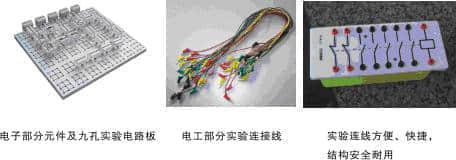 2、電子元件盒:裝有電子元件透明盒體(見彩圖),在通用電路扳上拼插實驗電路。