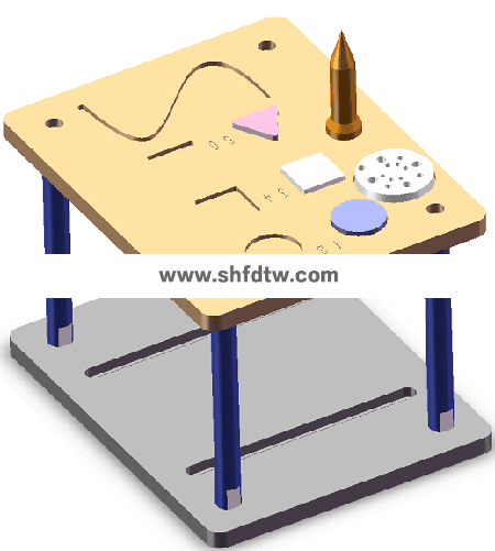 碼垛模塊采用銀色鋁合金材質(zhì),包含:碼垛底板,不同大小的碼垛工件。