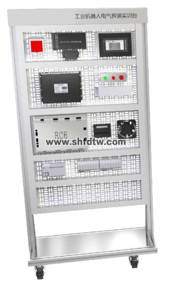 把工業(yè)級(jí)的機(jī)器人電氣柜的大部件拆散安裝在網(wǎng)孔架上,清晰體現(xiàn)機(jī)器人電氣連接原理。