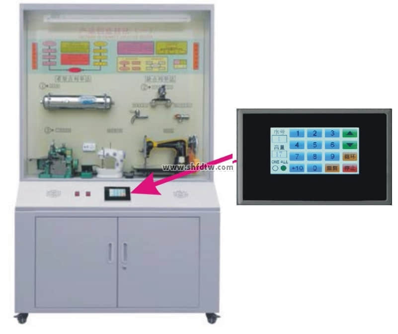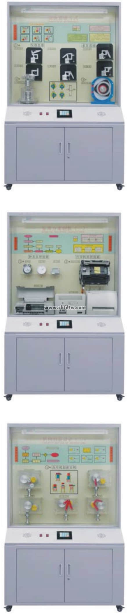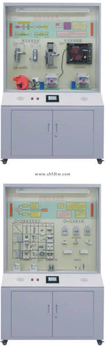 5、柜頂部裝有照明日光燈,柜背設(shè)有對(duì)開(kāi)門(mén),有利維護(hù)設(shè)備和方便維修。柜下部設(shè)有柜箱,方便存放單個(gè)模型、實(shí)驗(yàn)箱及相關(guān)實(shí)驗(yàn)文檔。柜底裝有萬(wàn)向輪,方便移動(dòng),符合人機(jī)工程要求。