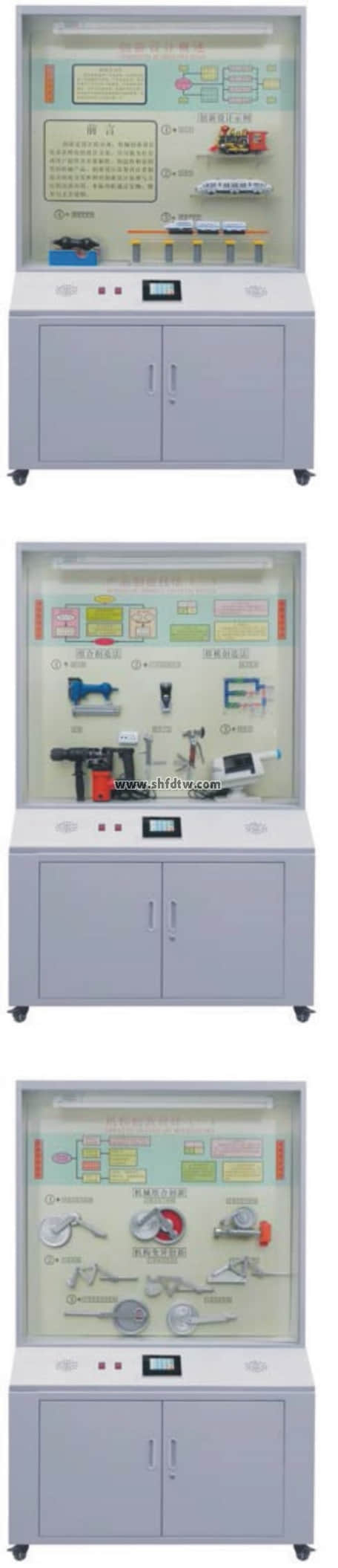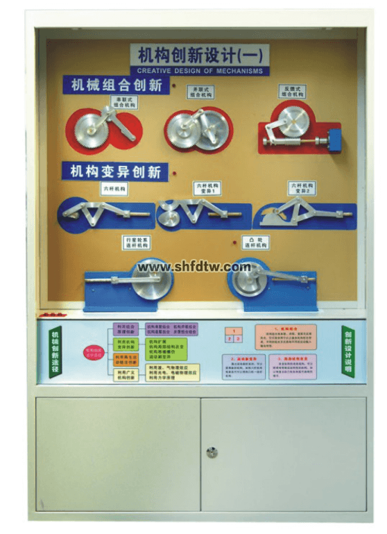 本陳列柜按國(guó)際標(biāo)準(zhǔn)流行設(shè)計(jì),采用各種新穎機(jī)電產(chǎn)品外,其余模型全部用鋁合金和有機(jī)玻璃等制作,每柜進(jìn)行彩噴圖文說(shuō)明,介紹機(jī)械創(chuàng)新設(shè)計(jì)的基本原理與方法,對(duì)提高機(jī)械創(chuàng)新意識(shí)與創(chuàng)新設(shè)計(jì)能力具有重大作用。是機(jī)械創(chuàng)新實(shí)驗(yàn)室內(nèi)主要教學(xué)設(shè)備。