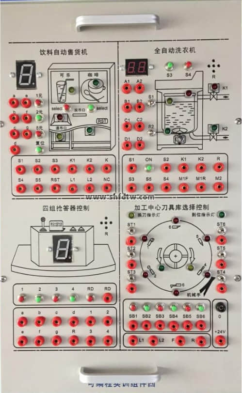鋼制實(shí)訓(xùn)模塊掛箱洗衣機(jī)、售貨機(jī)、交通燈、搶答器等鋼制模塊按要求增加有時(shí)間、數(shù)字顯示。