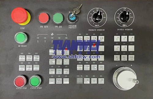 ◎數(shù)控系統(tǒng)面板尺寸:長400mm,寬220mm,鋁合金貼膜面板,注塑按鍵,內嵌9.7寸4:3液晶LCD顯示屏。