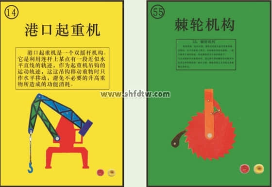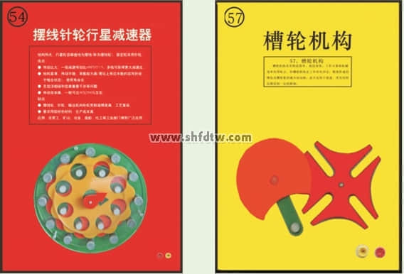 5、實(shí)驗裝置采用70件模型和70塊文字圖表板和6個設(shè)計軟件,分別介紹各種機(jī)構(gòu)的功能和結(jié)構(gòu)及用途和作用。