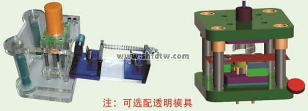 沖壓模具設計與制造多媒體仿真設計綜合實驗裝置采用天威沖壓模具設計多媒體軟件用電腦動畫語音演示模具結構功能和原理,同時配合實物模具模型;天威多媒體軟件包含32件沖壓模具動畫內容;實驗裝置采用32件模型和32塊說明模塊板供學生使用;模型和模塊板可隨課程內容需要進行更換操作。
