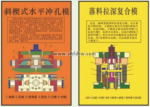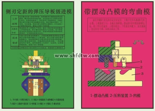 5、實驗裝置采用32件沖壓模具模型和32塊文字圖表板,分別介紹各種塑料模具的功能和結構及用途與作用。