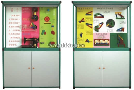 機(jī)械基礎(chǔ)陳列柜模型采用鼠標(biāo)或電腦遙控器任意選擇進(jìn)行演示,模型材料采用進(jìn)口有機(jī)板和硬聚氯制作而成,板面附有圖表和文字說(shuō)明制作在上面。演示形象逼真,運(yùn)行可靠,工藝美觀,使用本陳列柜可提高教學(xué)效果,節(jié)約學(xué)時(shí)是一套現(xiàn)代化集多媒體動(dòng)畫(huà)功能為一體化的機(jī)械課程教學(xué)實(shí)用設(shè)備。