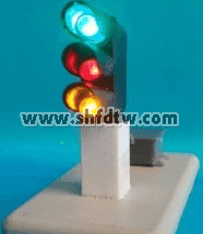 模型信號機(jī)按實物信號機(jī)比例縮小制作,采用LED發(fā)光光源,使用壽命達(dá)到3年以上,三個燈位每一路均可單獨控制,也可以根據(jù)需要全部點亮。