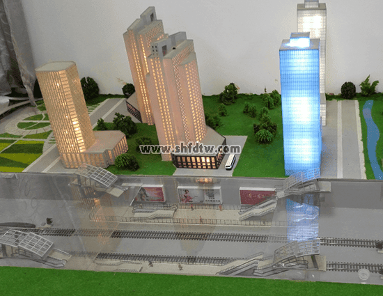 沙盤可根據(jù)用戶要求設(shè)置多個城市軌道交通車站,每一個車站配置一個站房和站臺。站房、站臺使用彩色亞克力板。精美逼真的山水裝飾采用亞克力和ABS板。車站和上部建筑照明采用安全電壓。