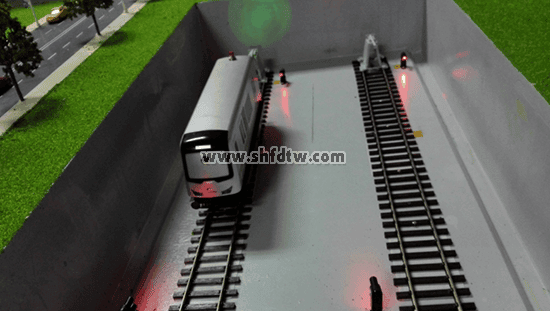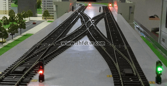 道岔及轉(zhuǎn)轍機(jī)選用可以集中控制或手動控制的比例縮小模型,轉(zhuǎn)向線路平順,模型尖軌密貼,能夠保證模型列車運行的穩(wěn)定,不脫軌。道岔模型還能模仿真實轉(zhuǎn)轍機(jī)設(shè)備向聯(lián)鎖系統(tǒng)反饋定位、反位表示信息。