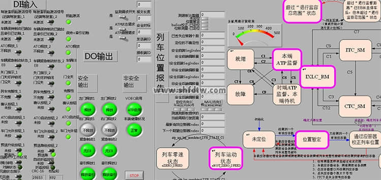 車載仿真系統(tǒng)具備和主流城市軌道交通線路所使用的相同的人機(jī)交互界面HMI和功能近似的車載ATP設(shè)備仿真器、車載ATO設(shè)備仿真器設(shè)備。列車模擬駕駛實訓(xùn)器能夠模擬城市軌道交通車載信號系統(tǒng)真實外部傳感器環(huán)境和車輛接口環(huán)境,能夠仿真模擬司機(jī)駕駛臺指示燈、按鈕、開關(guān)、司控器,能提供逼真的人機(jī)交互界面HMI向駕駛員實時反饋列車狀態(tài)信息,能夠?qū)崿F(xiàn)自動列車超速防護(hù)、自動駕駛、站臺自動精確停車等功能。