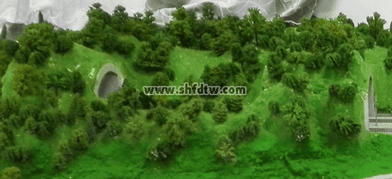 仿真綠化的塑料綠色小樹、綠色仿真草地、假山如下圖所示。
