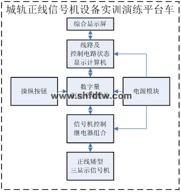 城軌正線信號機設(shè)備實訓(xùn)演練平臺由信號組合柜、信號繼電器、三顯示矮型信號機、信號變壓器、燈絲繼電器、XB箱、信號機及控制電路狀態(tài)顯示計算機、顯示屏、電源模塊、數(shù)字量驅(qū)動采集模塊、斷路器、練功平臺車等設(shè)備組成,設(shè)備外觀結(jié)構(gòu)如下圖所示。