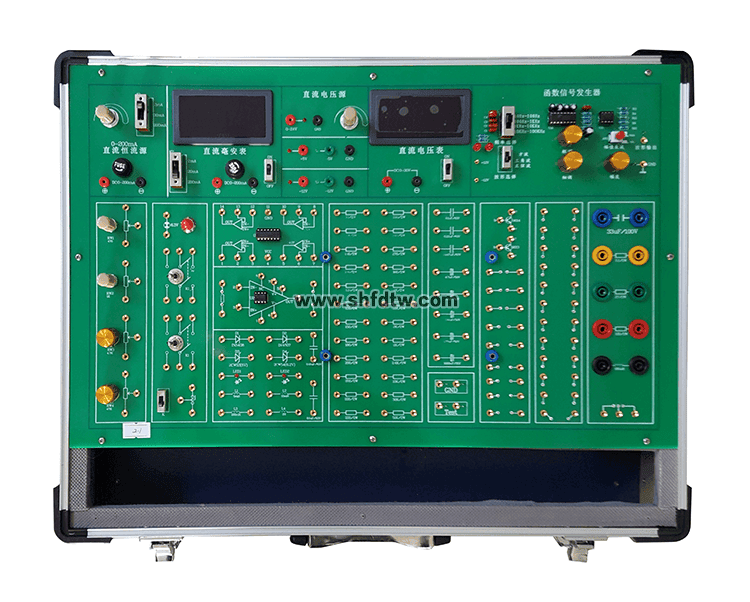 本實驗箱以全開放的形式設(shè)計,板上集成有實驗用各種元器件,實驗時學生自行選擇元器件,自行搭接實驗電路,實驗連接采用鎖緊疊插式鍍金插頭和插座,接觸可靠。電路板采用2.0厚雙面敷銅板設(shè)計工藝,堅固實用,使用壽命長。