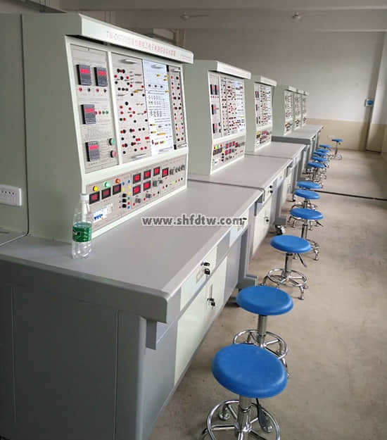 1、實驗桌:全鋼結(jié)構(gòu),鋼質(zhì)噴塑,耐磨防火面板,設(shè)有抽屜、柜子用于存放工具、配件等。