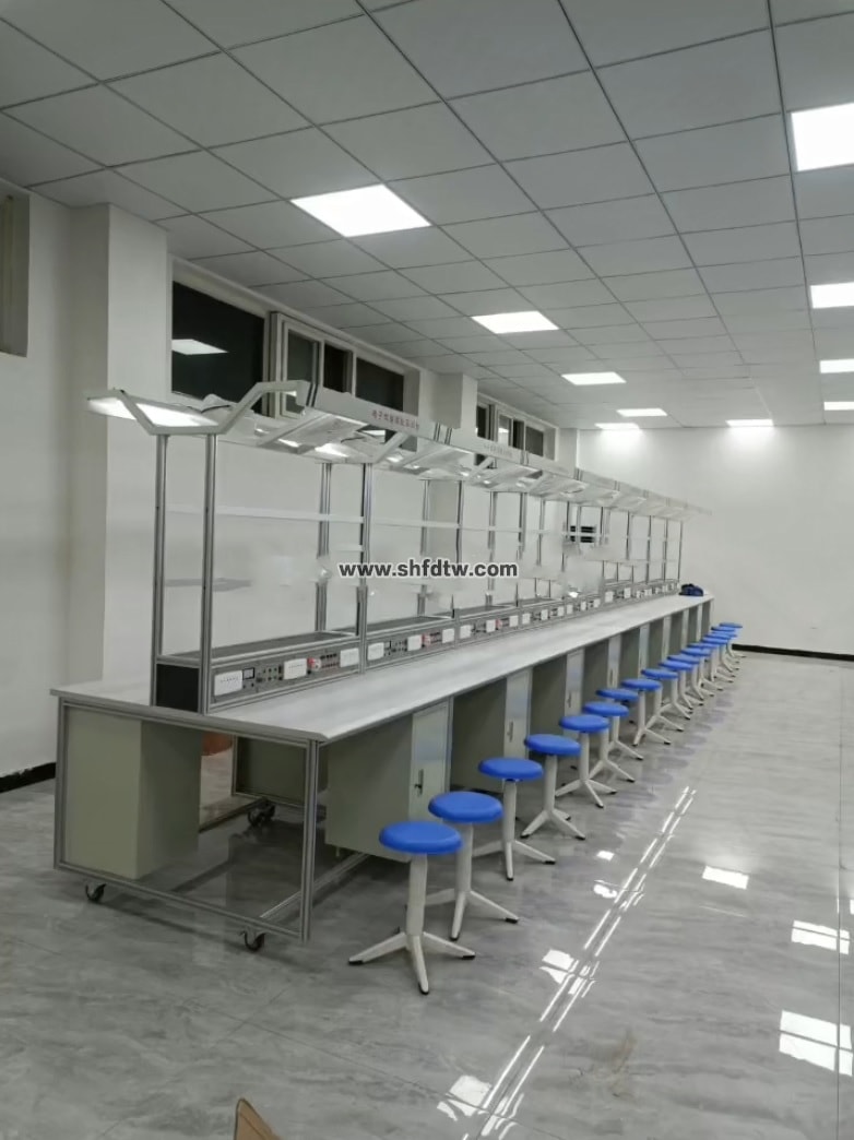 1、實訓臺 實訓臺主要由實訓桌、實訓面板、鋼木框架、頂部框架等組成。