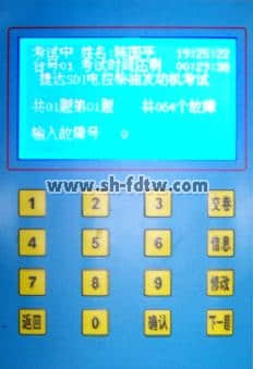 (3)學(xué)生終端由大屏幕液晶顯示器和觸摸答題鍵組成,學(xué)生屏平時(shí)顯示學(xué)生姓名、學(xué)號(hào)、標(biāo)準(zhǔn)時(shí)鐘,考試時(shí)顯示考試剩余時(shí)間、考試題目名稱及故障現(xiàn)象描述、考試題目數(shù)、每題的故障點(diǎn)數(shù)以及考試剩余點(diǎn)數(shù)。