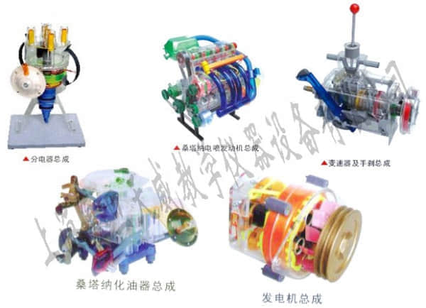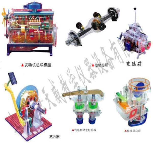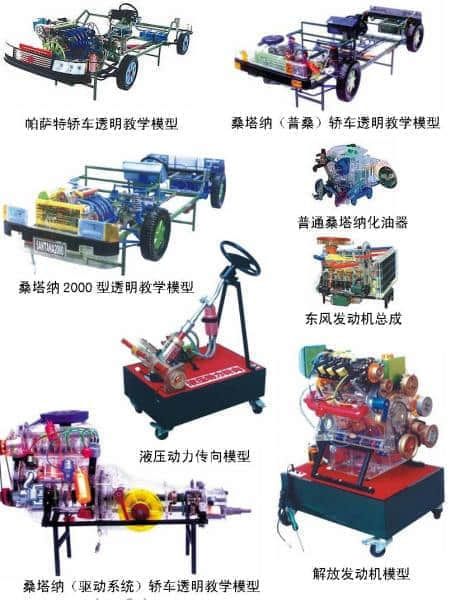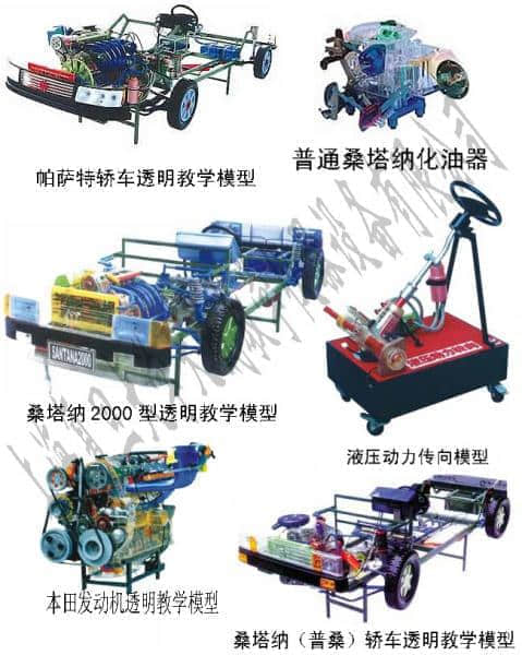 模型外殼采用有機(jī)玻璃,部件采用工程塑料,鑄鋁汽車件由模具一次成形鑄造,全透明、直觀、內(nèi)部結(jié)構(gòu)清晰,各部件一目了然。可駕駛、可調(diào)整電動(dòng)演示。發(fā)動(dòng)機(jī)總成,以電力驅(qū)動(dòng),在油門處設(shè)有調(diào)整裝置,能演示發(fā)動(dòng)機(jī)轉(zhuǎn)速的高低。離合器分離明顯,操作靈活,離合器外殼整體壓模而成。變速箱的各檔齒輪用各種不同顏色表示,操縱自如,手制動(dòng)靈活美觀。后橋外形壓模而成,其中主減速,差速,轉(zhuǎn)動(dòng)靈活,輪鼓剎蹄壓模成形,剎蹄可調(diào)節(jié)。車輪壓鑄而成,有防滑槽紋。前橋的前輪鼓柄杠拉桿均可調(diào)整,轉(zhuǎn)向裝置以及其電瓶、油箱、水箱、做工精細(xì),制動(dòng)管路分布清楚,一目了然。電路采用對(duì)插件前后分布,前燈架和風(fēng)窗用透明有機(jī)玻璃壓模成整體。儀表板及后燈架形象逼真、結(jié)構(gòu)牢固。