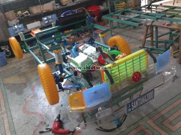 車架(底盤)、前橋與前懸架、鉗盤式制動(dòng)器(前輪)、等速式萬(wàn)向節(jié)、發(fā)電機(jī)、起動(dòng)機(jī)、汽油泵、濾清器、發(fā)動(dòng)機(jī)總成、變速箱、離合器、儀表盤、方向盤、油門、制動(dòng)