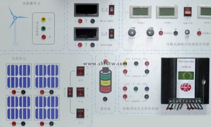 風(fēng)光互補并網(wǎng)發(fā)電與機電實訓(xùn)系統(tǒng)由太陽能光伏電板、雙軸跟蹤控制模塊、蓄電池模塊、太陽能控制器模塊、太陽能逆變器模塊、模擬風(fēng)洞發(fā)電模塊、開關(guān)控制模塊、環(huán)境監(jiān)測模塊、上位機監(jiān)控模塊,儀表顯示部分,(各功能轉(zhuǎn)換接口模塊)等組成;各控制系統(tǒng)集成于風(fēng)能發(fā)電、光伏發(fā)電為一體的教學(xué)實訓(xùn)臺;各系統(tǒng)通過連接電纜進行連接,形成一套可完成風(fēng)力及光伏發(fā)電、同步并網(wǎng)、離網(wǎng)電源的實驗及教學(xué)演示。幫助學(xué)生理解太陽能并網(wǎng)、離網(wǎng)及風(fēng)力發(fā)電系統(tǒng)的原理,從而起到學(xué)習(xí)工程實際應(yīng)用技能的作用。