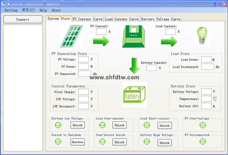 額定電壓:12V,額定電流為10A,配置鉛酸蓄電池,負(fù)載為100W以下的12V直流負(fù)載,控制單元一通道為光控輸出,另一通道為多類定時(shí)輸出。