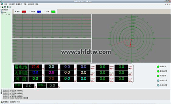 ◆ 顯示內(nèi)容:蓄電池電壓、風(fēng)機(jī)電壓、光伏電壓、風(fēng)機(jī)電流、光伏電流、風(fēng)機(jī)功率、光伏功率,能量模擬圖,當(dāng)前風(fēng)速(米/秒),當(dāng)前風(fēng)向(度),當(dāng)前風(fēng)力資源平估。