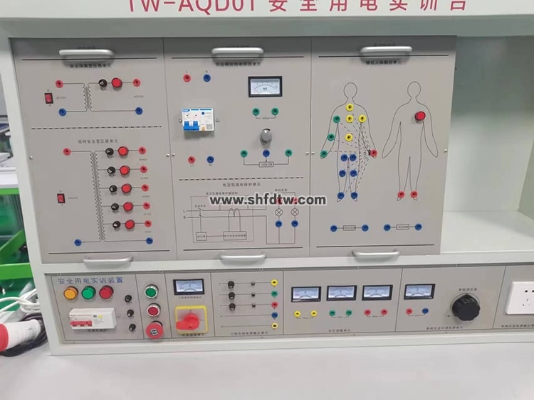 安全用電實訓臺,同時使學生學習電網的多種連接方式、多種常用的線路保護方式,比如直接接觸電擊防護、間接接觸電擊保護、以及安全設備選擇。