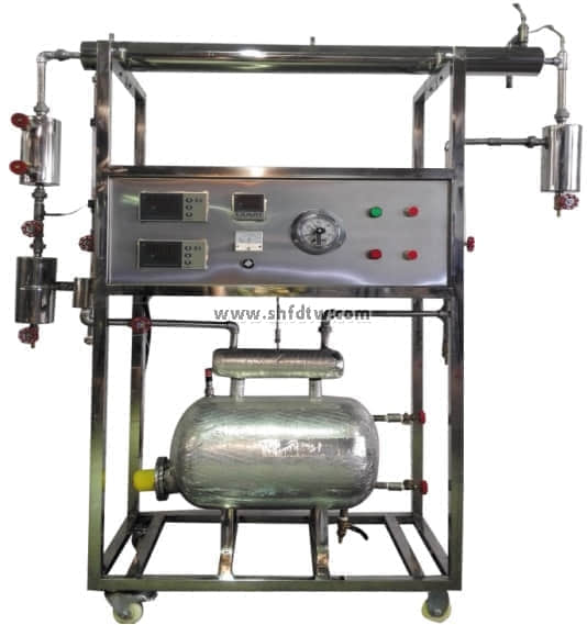 電蒸汽鍋爐、套管換熱器、蒸汽冷凝罐、蒸汽及水流量測(cè)試設(shè)備、加熱由固體調(diào)壓模塊無級(jí)調(diào)節(jié),由多路巡檢儀顯示的溫度測(cè)試系統(tǒng),不銹鋼臺(tái)架及控制屏等。