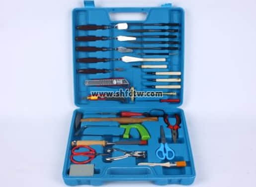 配備清單:木刻刀6支、油畫刀5支、什錦銼5支、剪刀2把、板刷1把、小錘1把、小銅錘1把、錐子1把、鉗子2把、壁紙刀1把、電烙鐵1個(gè)、勾刀1把、小鋸1把、鑿子1把、篆刻刀1把、打孔器1個(gè)、油石1塊 |