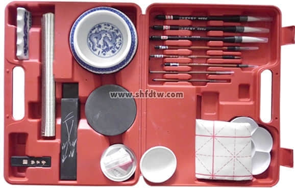 配備清單:筆洗1個(gè)、筆架1個(gè)、硯臺(tái)1個(gè)、筆簾1個(gè)、墨汁1瓶、毛筆8支、調(diào)色盤1個(gè)、毛氈1塊、鎮(zhèn)紙1副、印泥盒1個(gè) |