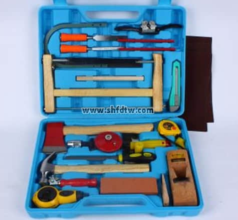 配備清單:木工鋸1個(gè)、木銼1把、鑿子2把、扁產(chǎn)1把、卷尺1個(gè)、角尺1把、壁紙刀1把、木工錘1把、斧子1把、鳥刨1個(gè)、油石1塊、墨斗1個(gè)、手搖鉆1個(gè)、砂紙5張、木刨子1個(gè)、木工鉛筆2支、U型鋸1把、線鋸條10根