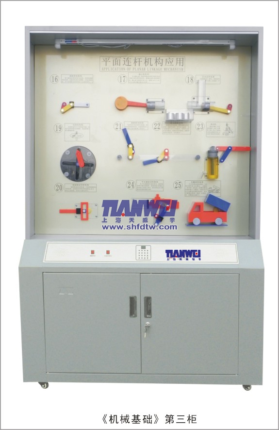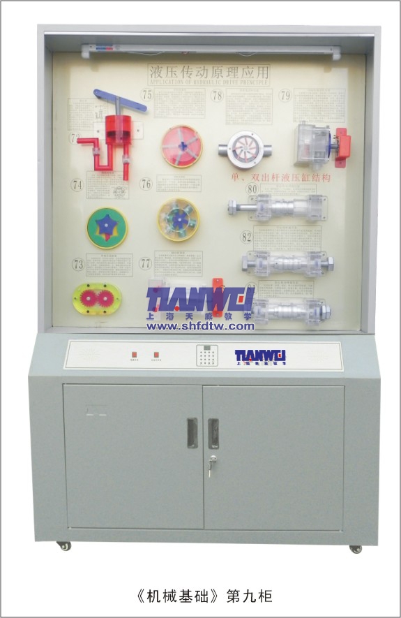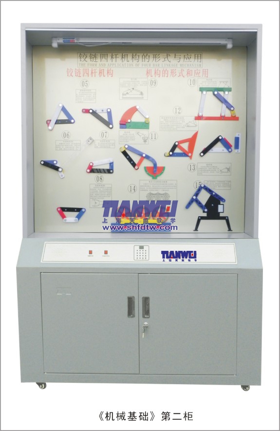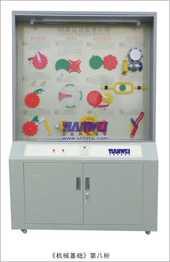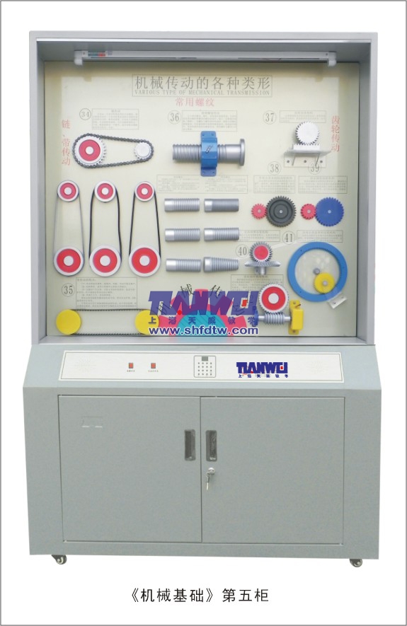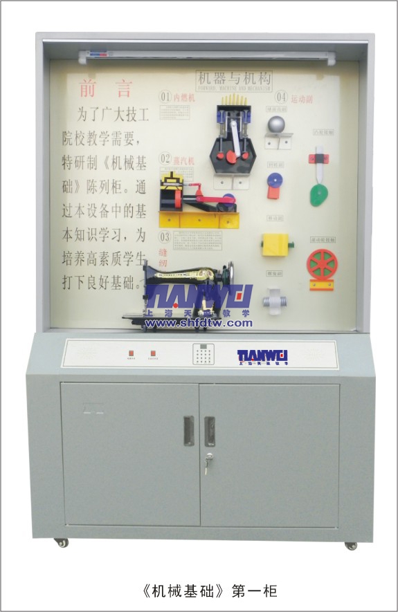 根據(jù)全國(guó)技工學(xué)校機(jī)械類通用教材《機(jī)械基礎(chǔ)》示教陳列柜是一套電化教學(xué)設(shè)備。本陳列柜共分十個(gè)柜,陳列柜通過機(jī)械模型或?qū)嵨铮浜舷鄳?yīng)的圖文資料,形象地展示與解說機(jī)械基礎(chǔ)的基本知識(shí),加強(qiáng)學(xué)生對(duì)通用機(jī)械基礎(chǔ)的類型、結(jié)構(gòu)特點(diǎn)及其設(shè)計(jì)的感性認(rèn)知,為進(jìn)一步學(xué)習(xí)機(jī)械基礎(chǔ)奠定基礎(chǔ)。