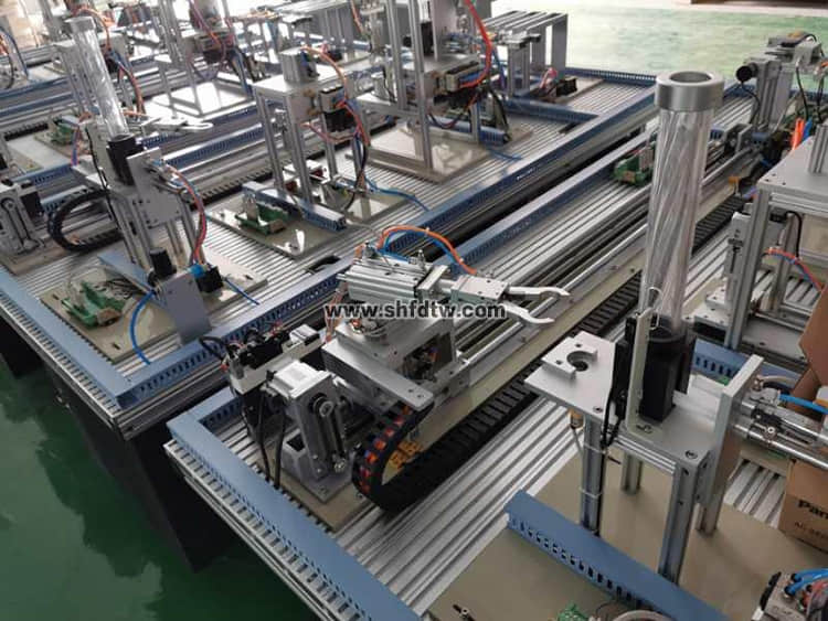 可以安裝送料機構、機械手、傳輸分揀機構。實訓模塊及PLC主機等可以放置在拉出式的支架上。