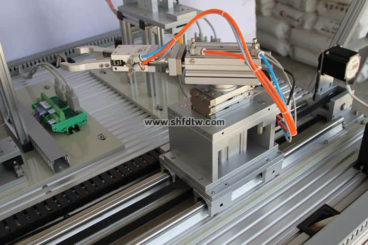 主要由直線電機(jī)驅(qū)動(dòng)器、直線導(dǎo)軌、四自由度搬運(yùn)機(jī)械手、定位開關(guān)、行程開關(guān)、支架、機(jī)械零部件構(gòu)成 |