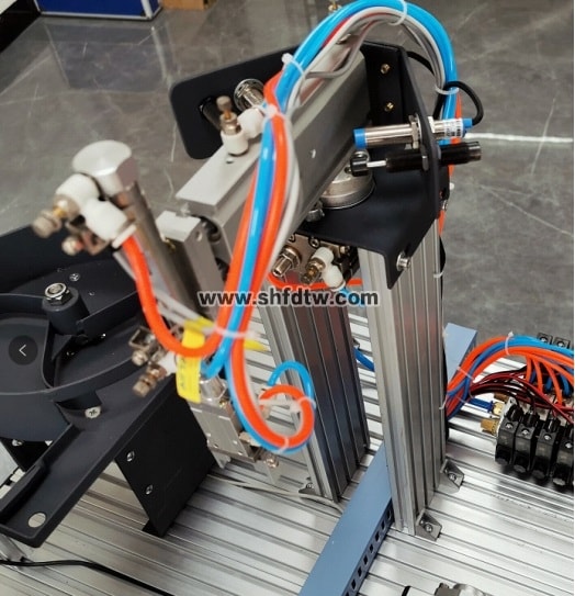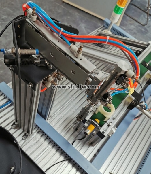 該系統(tǒng)上使用了的大量的氣動(dòng)元件,包括了多種電氣控制閥、多種氣缸、氣動(dòng)夾具、過(guò)濾調(diào)壓器、節(jié)流閥等,結(jié)合該系統(tǒng)的實(shí)際典型應(yīng)用以及每個(gè)氣動(dòng)元器件的應(yīng)用實(shí)際,可單獨(dú)的學(xué)習(xí)每一種氣動(dòng)元器件的工作原理、應(yīng)用場(chǎng)合等,包括各個(gè)氣動(dòng)元器件的之間是如何配合起來(lái)進(jìn)行優(yōu)化設(shè)計(jì)和應(yīng)用的。