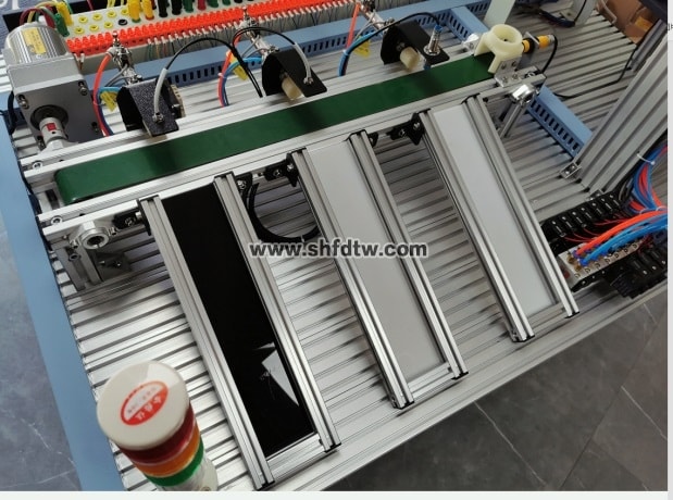 設(shè)備由一些典型機(jī)械部件和電氣控制部件組成,有PLC模塊、輸入按鈕模塊、電源模塊、變頻器模塊、接線面板模塊、機(jī)械部件模塊……等工作站構(gòu)成,是一個(gè)以現(xiàn)代工業(yè)現(xiàn)設(shè)備為原型的機(jī)電一體化生產(chǎn)線實(shí)訓(xùn)考核裝置。整體結(jié)構(gòu)臺(tái)用拆裝開(kāi)放式,用于電氣線路搭接、機(jī)械部件組裝等實(shí)訓(xùn)科目,可對(duì)現(xiàn)有的機(jī)械部件進(jìn)行組裝不相同的生產(chǎn)流程,也可對(duì)設(shè)備添加其它模塊進(jìn)行擴(kuò)展,模塊采用標(biāo)準(zhǔn)化接口具有很好的互換性,能夠靈活的適應(yīng)各種教學(xué)要求。